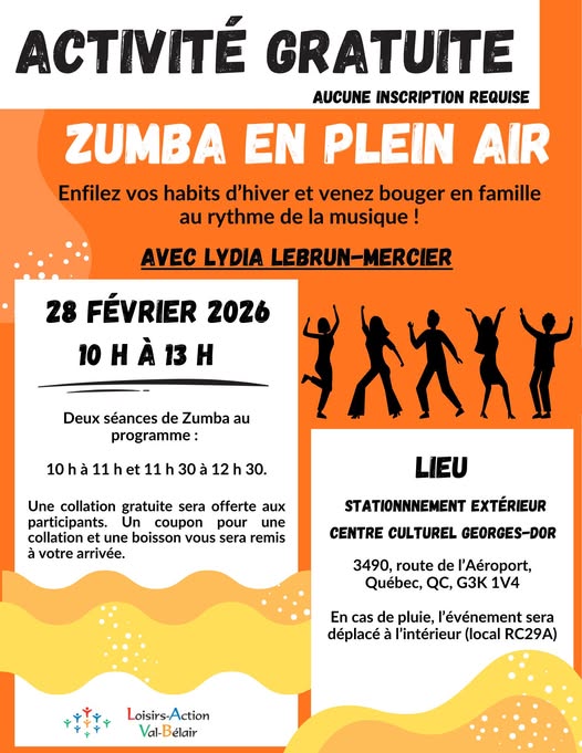 Zumba en plein air le 28 février au Centre culturel Georges-Dor